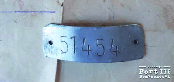 Drugim zdjęciem które Fundacja otrzymała od Pana Chabowskiego jest zdjęcie bezcennej pamiątki uzyskanej od rodziny więźnia Fortu III w Pomiechówku. Na zdjęciu obok znajduje się metalowy numer, który Pan Zygmunt Jankowski nosił na nadgarstku będąc więźniem KL Mauthausen. Pan Zygmunt Jankowski został aresztowany przez gestapo w Cekanowie pod koniec 1943 r. Za działalność w AK najpierw trafił do więzienia w Płocku, potem do Fortu III w Pomiechówku a w lutym 1944 r. do KL Mauthausen. Przeżył. Zachował blaszkę ze swoim numerem.