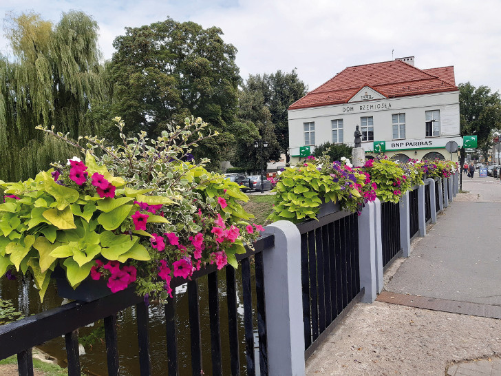 Warczące place budowy dają realną nadzieję na to, że tych ŁADNYCH miejsc będzie coraz więcej, tymczasem podkreślmy urodę fontanny i przy niej dobrze utrzymanych zieleńców pełnych kwiatów, zerknijmy na Świętojańską, przy której mieści się BAR KROKIECIK, dbający o wystrój okna wystawowego i tego co przed nim, a zarazem ulicy, zauważmy ciekawy “słupek” ogłoszeniowy przy MCKiS, no i spójrzmy na bujne, ciekawie zestawione kwiaty na mostku ŚWIĘTOJAŃSKIM, i na dwu pozostałych.