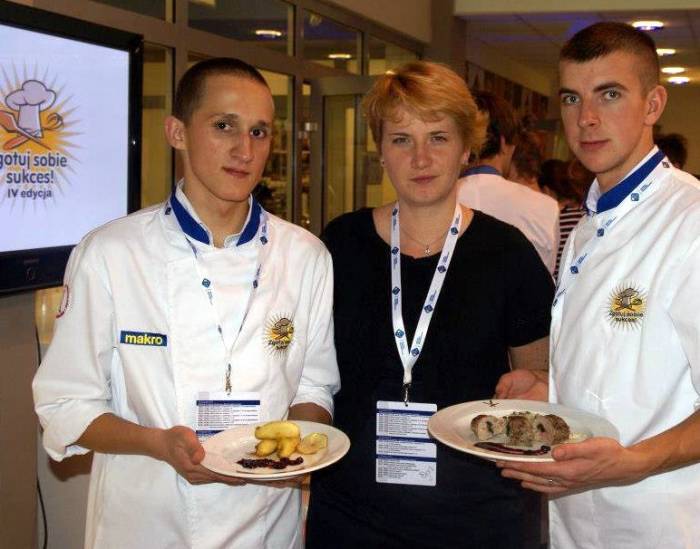 Tomasz Golianek i Daniel Podlasin,  znani uczniowie ZS im. B. Prusa, odnieśli spektakularny sukces w konkursie. Uplasowali się na piątym miejscu IV edycji ogólnopolskiego konkursu, organizowanego przez MAKRO Cash and Carry Polska. Ów prestiżowy konkurs adresowany był do zespołów uczniowskich (dwuosobowych) szkół gastronomicznych: średnich i wyższych. W eliminacjach wzięło udział 56 drużyn, do półfinałów zakwalifikowało się 24. Tygodnik rozmawiał z Tomkiem i Danielem o tym niezwykle ważnym wydarzeniu i dla szkoły, i dla nich samych oraz – nie ukrywajmy – dla Pułtuska. W rozmowie brała również udział nauczycielka chłopców – Anna Maria Sawicka, gastronomiczna mistrzyni, która twierdzi, że chłopcy już ją przerośli. I nie o wysokość tu chodzi. *** Kiedy do szkoły dotarła wiadomość o konkursie, nikt się nie namyślał, czy brać w nim udział, czy nie. – To prestiżowym konkurs – od razu mówi Tomek Golianek. – Postanowiliśmy się zgłosić, jak do każdego. Chcemy się pokazywać, uczyć. Pierwszym etapem było stworzenie własnej potrawy w szkole (polędwica wieprzowa i borowik), sfotografowanie jej i wysłanie zdjęcia. Na podstawie tego zakwalifikowaliśmy się do eliminacji, które odbyły się w kwietniu. Półfinał nastąpił niedawno – 15 listopada, finał dzień później.