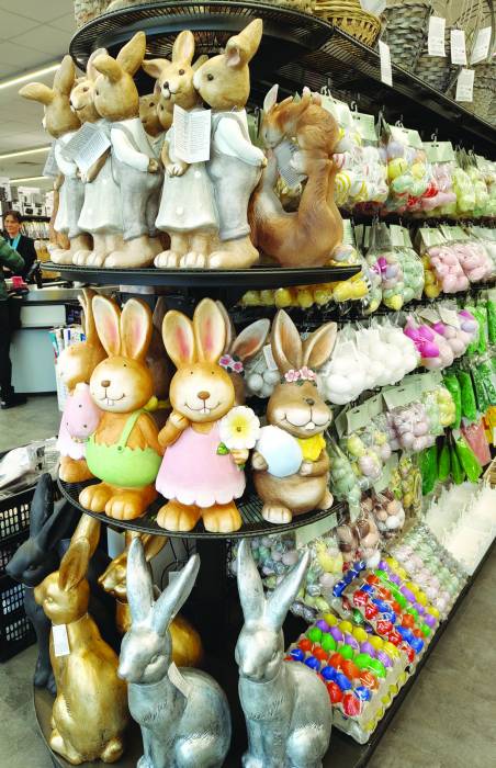 W ACTION będzie tych przedmiotów coraz więcej i będą się pojawiać sukcesywnie, zaś supermarket TEDI już kusi przebogatą wystawą, która nie będzie uzupełniana. Warto więc przyjrzeć się wystawionemu wielkanocnemu dizajnowi i zdecydować, co nam się przyda w świątecznym wystroju domu i ogródka, bo przedmiotów jest w bród, wykonanych z najróżniejszych materiałów. Ich ceny, jak poinformowały nas panie kasjerki, są przystępne i niższe niż identyczne w innych sklepach, np. porcelanowe jaja różnej wielkości czy zajączki.