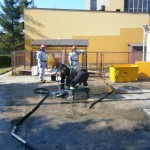 Jak nas poinformował rzecznik spółek gminnych Zbigniew Tołłoczko, we wtorek, 22 lipca, na terenie ciepłowni przy ul. Kolejowej 8 nastąpiło rozszczelnienie pomiędzy kołnierzem spustowym zbiornika zawierającego kwas solny, a zaworem spustowym tego zbiornika. W zbiorniku wykonanym z laminatu, o pojemności 2000 litrów, znajdowało się w momencie awarii około 400 litrów kwasu. O godzinie 5 53 zgłoszono awarię Straży Pożarnej. W akcji ratowniczej uczestniczyły 4 zastępy /11 osób/ z Komendy Powiatowej Państwowej Straży Pożarnej w Pułtusku oraz 3 zastępy /10 osób/ z Komendy Miejskiej Państwowej Straży Pożarnej w Ciechanowie. Dowodził bryg. Grzegorz Baprawski z KP PSP w Pułtusku. Czynności strażaków polegały na wypompowaniu kwasu solnego z uszkodzonego zbiornika do zbiornika zastępczego, naprawie uszkodzonego zaworu oraz przelaniu kwasu z powrotem do tego samego zbiornika. Sorbent, który posłużył do zebrania niewielkiej ilości rozlanego kwasu solnego, przekazano do utylizacji. Wydzielono strefę bezpieczną poprzez zamknięcie ulicy Kolejowej na odcinku około 100 metrów. Ewakuacja okolicznych mieszkańców nie była konieczna. Nikt z pracowników ciepłowni oraz strażaków nie ucierpiał. Akcja ratownicza przebiegła bardzo sprawnie. Nad bezpieczeństwem czuwali też policjanci z Komendy Powiatowej Policji w Pułtusku. Ruch na ulicy Kolejowej przywrócono około godziny 9. Awaria nie miała negatywnego wpływu na ciągłość pracy ciepłowni. Kwas solny służy w procesie produkcji ciepła do regeneracji wody technologicznej w kotłach i sieci ciepłowniczej – powoduje wytrącanie osadu kamiennego zawartego w wodzie.