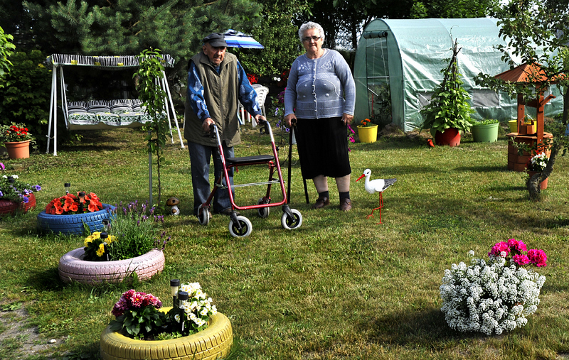 – Mamy sześcioro dzieci i dziewięcioro wnuków. Jedna z córek mieszka razem z nami. Widzi pan, tak to już jest, że kiedy człowiek nie może już tak dobrze chodzić i dokuczają mu różne bóle, to najchętniej by się położył i nic nie robił. Ja tak nie mogę, dlatego wymyśliłam sobie zajęcie i wykonałam z pomocą domowników ten oto ogródek z kwiatami, figurkami, budowlami, które kupiłam po okazyjnej cenie. Teraz wstaję o godzinie piątej rano i już jestem pośród moich kwiatów. Segreguję suche liście i opadłe płatki. Przyglądam się, jak ta natura garnie się do życia do światła. Gdy się to obserwuje, aż chce się żyć! Niestety nie mogę podlewać konewką tych roślinek, wyręcza mnie w tym córka. Mąż nic nie może pomóc, gdyż chodzi o balkoniku – powiedziała Tygodnikowi pani Henryka.