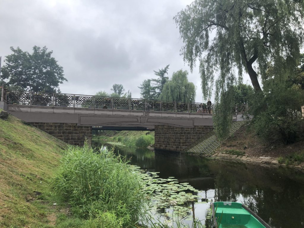 W ramach rozbudowy mostu planuje się rozbiórkę istniejącego przęsła wraz z wyposażeniem oraz rozbiórkę nawierzchni na dojazdach chodników, schodów betonowych i umocnień skarp kanałku. Długość mostu ze skrzydełkami wynosi 25,61 m, a szerokość 12,46 m. Nawierzchnia jezdni obiektu mostowego wykonana będzie z kostki granitowej. Most zostanie wyposażony w ochronną, ozdobną balustradę, zamontowaną na gzymsie żelbetowym wysokości 1,1 m. Powstaną także dwie pary schodów skarpowych z poręczą. Zakres robót związanych z rozbudową mostu obejmuje również przebudowę krótkich odcinków ul. Benedyktyńskiej, które bezpośrednio przylegają do planowanego do rozbudowy mostu poprzez dostosowanie rzędnych nawierzchni jezdni o długości 48 m i szerokości 6,0 m wraz z chodnikami o szerokości od 2,5 do 4,5 m. W celu lepszego skomunikowania uwzględniono także przebudowę schodów prowadzących w kierunku al. Wiktora Gomulickiego.