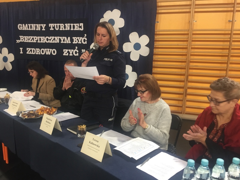 Maria Zaremba, pedagog szkolna, organizatorka spotkania: – To cykliczne spotkanie. Każdego roku od Gminnej Komisji Rozwiązywania Problemów Alkoholowych szkoły dostają środki na realizację profilaktyki. Nasza szkoła przyjęła tematykę bezpieczeństwa. Do naszego TURNIEJU zaprosiliśmy wszystkie gminne szkoły. Przybyły więc trzyosobowe drużyny i dziesięcioosobowe grupy kibiców z każdej placówki. Mamy też gości, to strażacy z OSP z Grabówca, którzy prezentują różne działania ratownicze.
