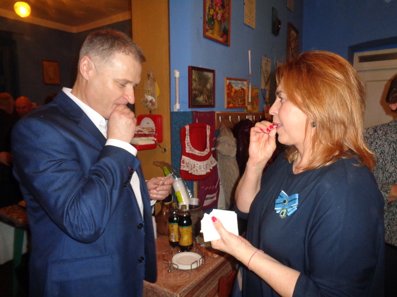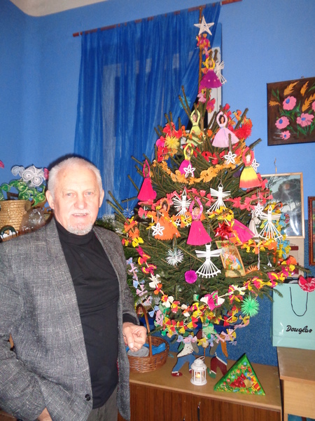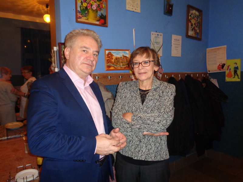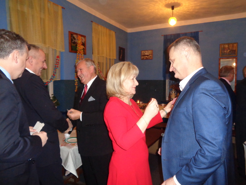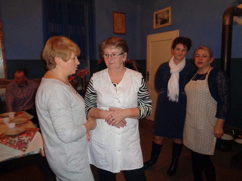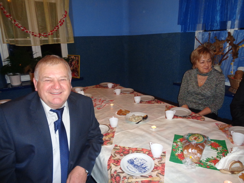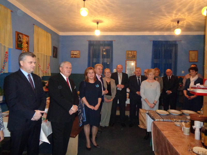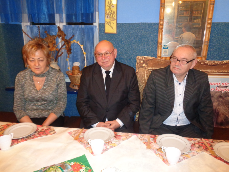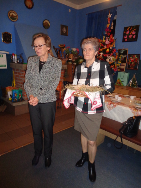 A do stołu po życzeniach ciechanowskiej etnograf Grażyny Czerwińskiej i Haliny Witkowskiej zasiedli mieszkańcy Pniewa, Zator, Pułtuska… Radna powiatowa Zofia Drabczyk wręczyła pani Halinie bożonarodzeniowy prezent – wełnianą, o pięknym wzorze i kolorze, narzutę na muzealne łóżko.