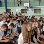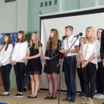 Poprowadzili ją: drugoklasistka Oliwia Domała i trzecioklasista Adrian Matusiak. Zanim jednak przeszli do konferansjerki, dyrektor Andrzej Zaręba zarządził minutę ciszy, poświęconą śp. Walentynie Krzyżanowskiej, po której Marta Kamila Kowalewska odczytała swój wiersz dedykowany ulubionej nauczycielce. Następnie chór szkolny odśpiewał hymn, którego autorką jest Monika Paszkowska.