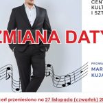 22-05-2025 10:21W imieniu organizatorów informujemy, że termin koncertu Łukasza Zientarskiego planowany wstępnie na 29 maja 2025 r. z przyczyn technicznych zostaje przeniesiony na 27 listopada 2025 r. na godzinę 19:00. Wszystkie kupione dotychczas bilety zachowują ważność dla nowej daty. Szczegóły na plakacie poniżej. Miejskie Centrum Kultury i Sztuki w Pułtusku