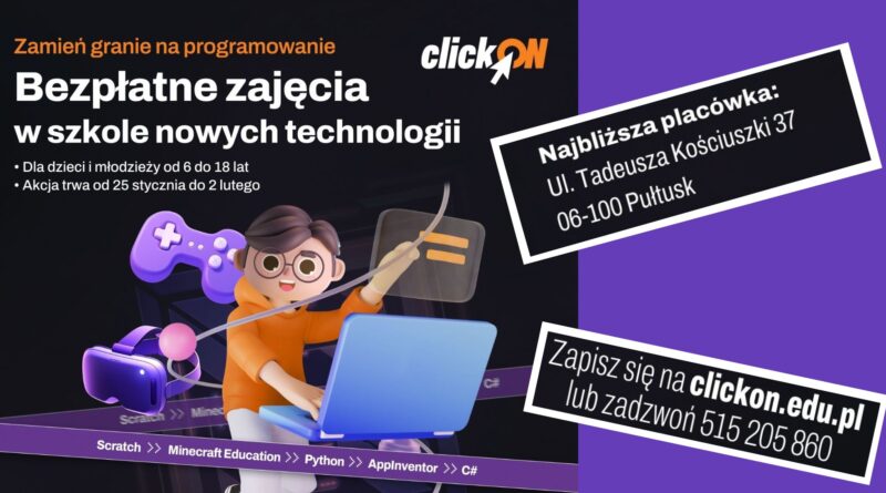 ClickOn w Pułtusku – bezpłatne warsztaty z programowania dla dzieci i młodzieży!