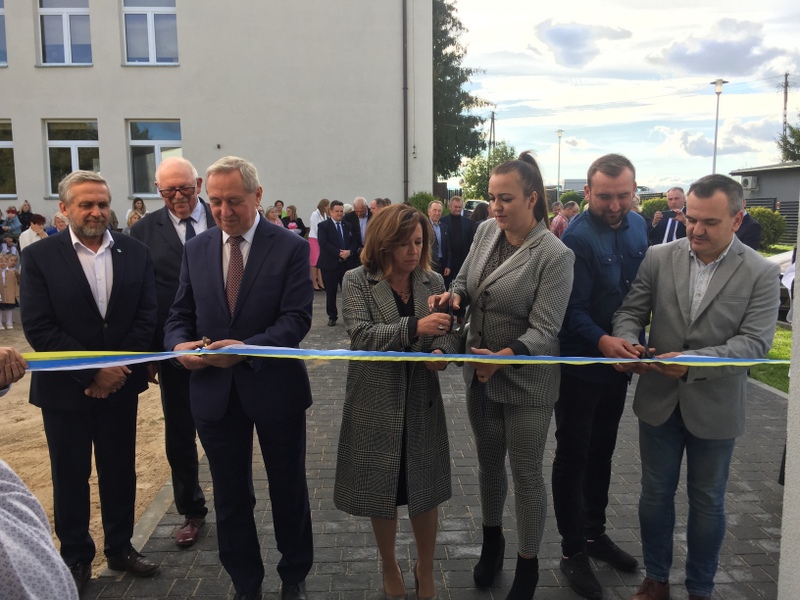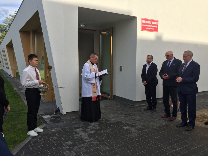 Oficjalne otwarcie przedszkola nastąpiło przed wejściem do nowo wzniesionego budynku.