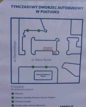 Już w zeszłym tygodniu, choć autobusy zajeżdżały jeszcze na dworcowy plac, sam budynek był pusty i zamknięty. W piątek na parking na przeciwko dworca przenoszono postój taksówek, dalej, przy Urzędzie Pracy stanął tajemniczy pusty kontener. Dziś na drzwiach dworca mamy informację iż w związku z jego zamknięciem, zmienia się rozkład jazdy i organizacja ruchu. W pustym jeszcze kontenerze ma powstać kasa biletowa i informacja. Stanowiska 1 i 2 są usytuowane na dawnym postoju taksówek, natomiast 3 i 4 przy bocznej ścianie marketu Stokrotka. To tymczasowe rozwiązanie. O dalszych będziemy informować na bieżąco.