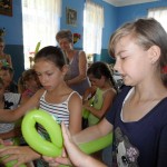 Dużym zainteresowaniem cieszyły się również zajęcia z garncarstwa i papieroplastyki. – Warsztaty prowadziła pani Monika Poteraj, która miała świetny kontakt z dziećmi. Zachwycała nas swoimi pomysłami – powiedziała H. Witkowska. – Zachwycił nas również cyrkowy magik. Pokazywał cyrkowe sztuczki i uczył robić bransoletki. Dzieci nie chciały go wypuścić.
