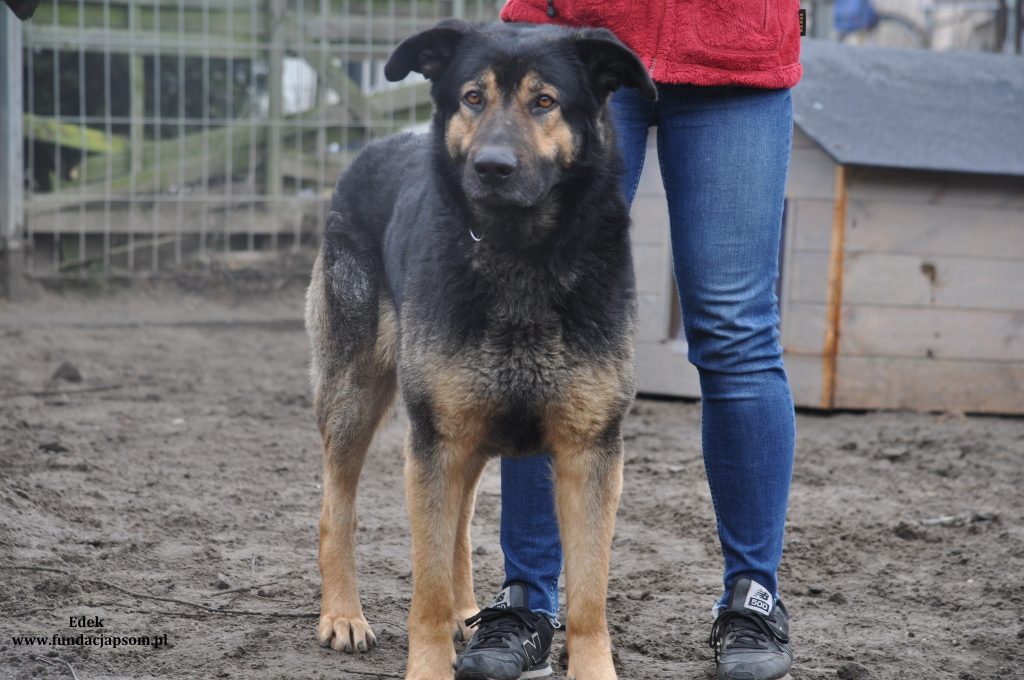 Pięknie umaszczony Edek to dużej wielkości psiak z terenu gminy Baboszewo. Jest spokojny, uwielbia kontakt z człowiekiem i chętnie nadstawia się do głaskania. Potrafi chodzić na smyczy, choć z początku mocno ciągnie. Gdzie rodzina Edka?