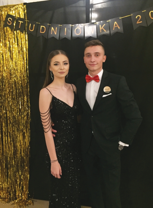 Uczniowie, chociaż lekko stremowani czekającym ich polonezem, rozpoczynającym bal, chętnie rozmawiali z „TP”. Kinga Kołodziejczyk towarzyszyła Janowi Dydze, to przemiła para. – Będziemy się bawić do samego końca – mówił Jan. Spytawszy o koszt kreacji Kingi, usłyszałem: – Żadne pieniądze się nie liczą na taką okazję. A Jan wygląda nienagannie, ładnie mu w garniturku i z czerwoną muchą… – komplementowała partnera Kinga. Jan: – Trochę w wyborze ubrania pomagała mi mama.