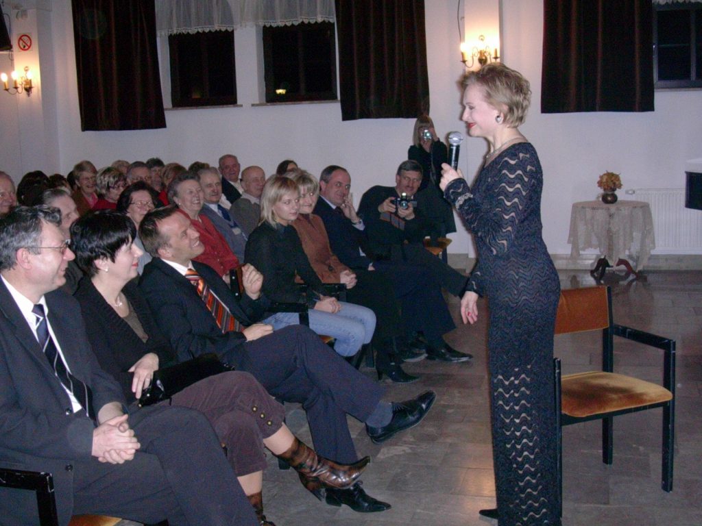 Dziś przed nami znakomita aktorka Grażyna Barszczewska. Na spotkaniu w przyzamkowym Maneżu. Jakim spotkaniu? Nie pamiętam. Ludzi był tłum, ona na scenie, piękna jak zawsze. Robert Gajda, wówczas jeszcze dr nauk medycznych, wpatrzony w gwiazdę, ona w niego. Tu aktorka stoi, ale również siedziała na kolanach doktora. Także była w jego ramionach; zdjęcia nie kłamią. My, dziennikarki TP, trochę tęsknimy za tamtymi czasami; ileż to było okazji do przedstawienia CZYTELNIKOM znanych ludzi i zdarzeń, w których oni uczestniczyli. GMD |