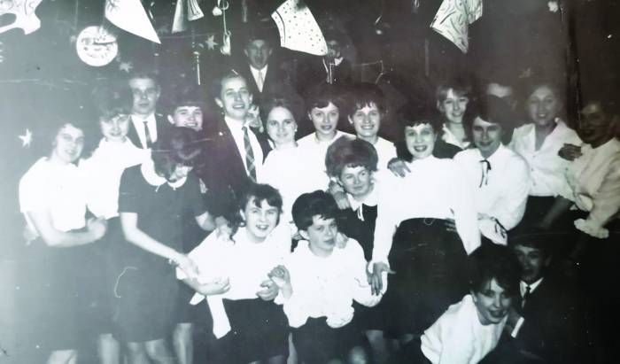 Zdjęcie dostałam od ULKI KAŹMIERKOWSKIEJ, mojej przyjaciółki, z którą mieszkałyśmy PRZEZ ŚCIANĘ i z którą to, wiele razy, usprawiedliwiałyśmy się z nieprzygotowania do lekcji z powodów różnych: a to światła nie było na naszej ulicy, a to zatrułyśmy się nieświeżą kiełbasą… Pan machał ręką, co znaczyło: siadajcie kłamczuchy.
