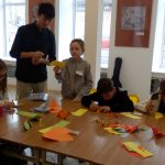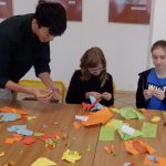 Od lodów przejdźmy do śpiewu. To seniorski zespół estradowy  przygotowuje swój program. Ale my o dzieciach i o feriach…  W Galerii Sztuki 4 Strony Świata trwają zajęcia z… origami. W ten sposób GALERIA wykorzystywana jest  jako miejsce różnorodnych  spotkań dzieci i młodzieży. O to właśnie chodziło – to novum w związku z przejęciem 4 Stron Świata przez MCKiS.  Zajęcia z origami prowadzi Tajwańczyk, wolontariusz przebywający w Pułtusku. – On również prowadzi zajęcia stałe.  O, tu mamy przepiękne drzewo motyli przygotowane metodą origami – objaśnia dyrektor Sosnowicz – Ptak. – Mamy zwierzątka, ryby, motyle, tak pokazujemy, co można zrobić z papieru.