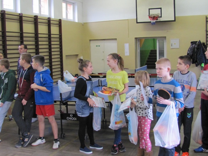 Na zakończenie ferii z tenisem stołowym wszyscy zawodnicy startujący w turniejach z rąk organizatorów: Dyrektora MOSiR – Piotra Karkowskiego oraz kierownika PSP nr 3 – Roberta Bajno, otrzymali paczki ze słodyczami i owocami. Sędzią głównym turnieju był Włodzimierz Foltyn.