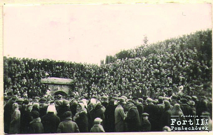 W kwietniu 1945 r. odbyły się na Forcie III w Pomiechówku spontaniczne ekshumacje. Ze zdarzenia powstały okolicznościowe albumiki ze zdjęciami – do objerzenia w galerii zdjęć na www.forttrzecipomiechowek.org. Na jednym ze zdjęć widać kolumnę ludzi maszerującą (w domyśle) na Fort