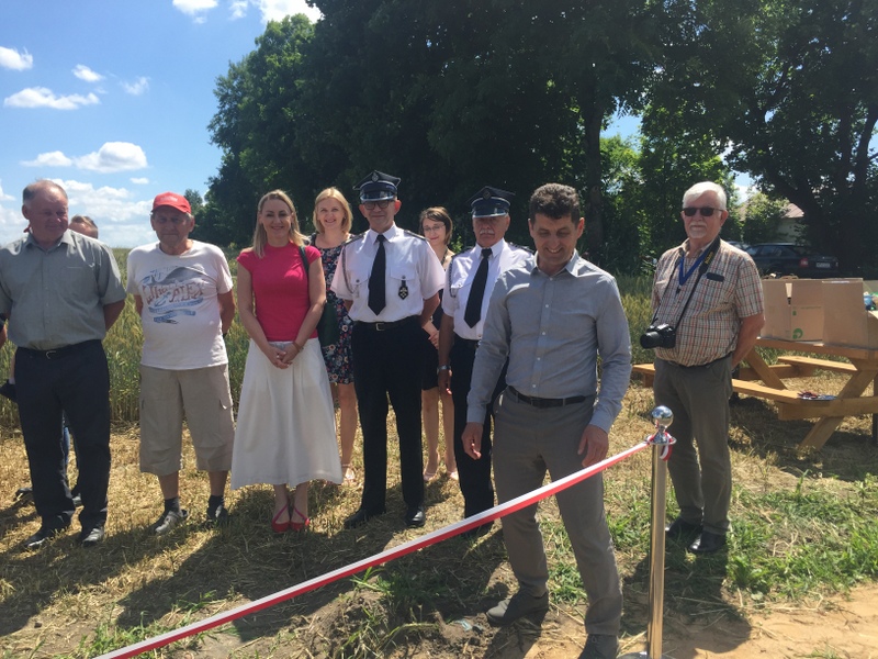 Wójt Robert Wróblewski powitał zebranych na stacji w Poniatach Wielkich. – Postaramy się działać sprawnie, jest gorąco, a w drugiej części ścieżki czekają na nas różne atrakcje i grillowane kiełbaski. Zapraszam wszystkich i witam gości, szczególnie gorąco panią prezes Kamilę Mokrzycką z Wojewódzkiego Funduszu Ochrony Środowiska i Gospodarki Wodnej. Z Wojewódzkiego Funduszu – na tworzenie ścieżek edukacyjnych w miejscowości Poniaty Wielkie i Skorosze – otrzymaliśmy ponad 70 tys. zł dofinansowania.