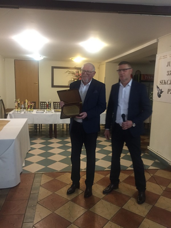 Spotkanie jubileuszowe było również okazją do rozmów z hodowcami, a te są ciekawe. Krzysztof Rupiński, z grupą zapaleńców, dwunastu ich było, rozpoczął hodowlę 35 lat temu. Kontaktował się wówczas z hodowcami z Ciechanowa i wciąż rozszerzał znajomości, poszerzając swoją wiedzę. Gołębie? Pozostał mu w pamięci gołąb rasy belgijskiej, pocztowy – ARDEN, którego nabył od Ryszarda Woźniaka z Zielonej Góry, hodowcy – mistrza. Gołąb wygrał dwa loty długodystansowe, po czym został reproduktorem, od którego hodowca uzyskał doskonałe potomstwo. Dożył 16 lat, a jego wnuczka zajęła 111 miejsce na 4 i pół tysiąca startujących w wyścigu gołębi z miejscowości Algavre. Jako ciekawostkę podajmy, że zwycięzca lotu otrzymał 250 tysięcy euro. Gołębie to pasja pana Krzysztofa, też oddech od codzienności i odstresowanie, ale też troska o stado, o przygotowanie gołębi do startu i wyścigów. Swoją pracę przy gołębiach może porównać do pracy sportowego trenera. W pamięci prezesa pozostała też tragedia w Katowicach, z 2006 roku, kiedy to runął dach w hali wystawowej. Krzysztof opuścił ją 40 minut przed katastrofą.