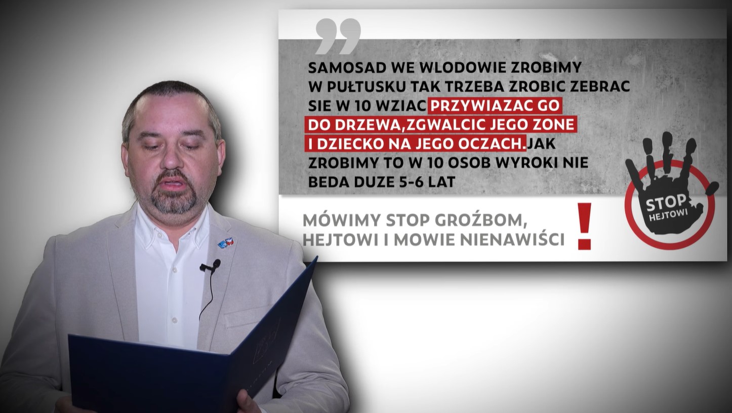 Nadal nie wiem kto dopuścił się opublikowania tych haniebnych treści, i nie wiem czy ten bardzo dziwny telefon miał z tym coś wspólnego. Ale chciałbym zaapelować o zaprzestanie hejtu i siania języka nienawiści w przestrzeni internetowej. Wierzę mocno, że organy ścigania staną na wysokości zadania i ustalą sprawcę, bo nikt nie może być bezkarny w internecie.