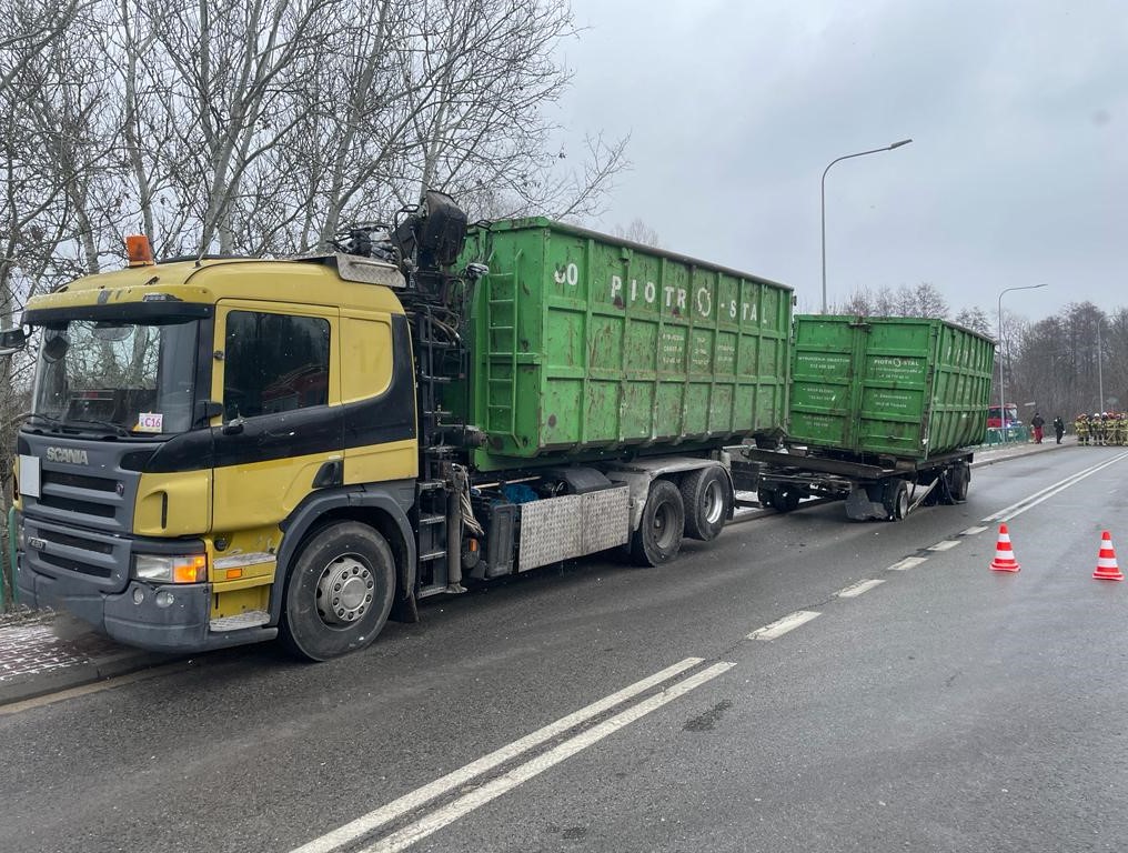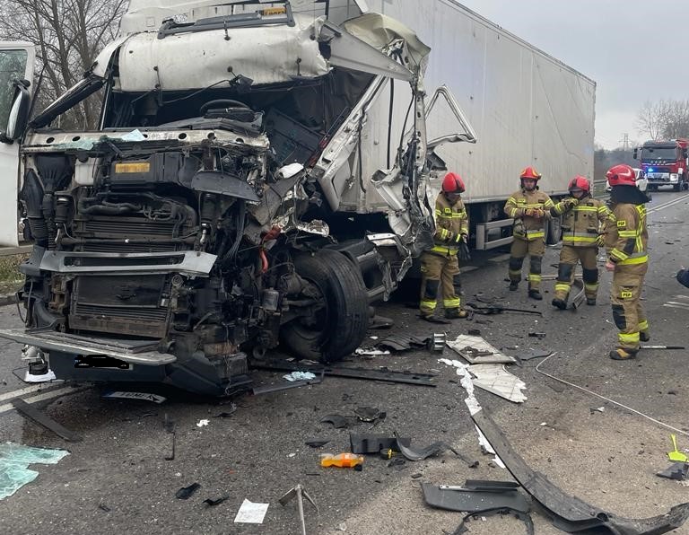 Do pierwszego zdarzenia doszło w Pułtusku, na ul. Wyszkowskiej. Ze wstępnych ustaleń funkcjonariuszy Wydziału Ruchu Drogowego wynika, że kierujący ciężarową Scanią, 47-letni mieszkaniec pow. makowskiego, jadąc w stronę Wyszkowa, nie zachował bezpiecznej odległości pomiędzy pojazdem poprzedzającym, którego kierujący chciał skręcić w ul. Nadnarwiańską. Późna reakcja kierowcy spowodowała, że chcąc uniknąć najechania na tył osobówki zderzył się czołowo z nadjeżdżającym z naprzeciwka pojazdem ciężarowym, kierowanym przez 33-letniegio mieszkańca Tłuszcza. Nie udało się jednak całkowicie uniknąć zderzenia z pojazdem osobowym, na skutek czego uszkodzeniu uległa jego tylna karoseria. Uczestnicy byli trzeźwi. 47-letni kierowca Scani, na skutek poniesionych obrażeń, został przewieziony do szpitala w Makowie Mazowieckim. Ruch w tym miejscu był utrudniony. Policjanci zorganizowali objazdy. Do zdarzenia zadysponowani zostali również funkcjonariusze Straży Pożarnej, którzy pomagali w zabezpieczeniu miejsca zdarzenia, usunięciu pojazdów oraz uprzątnięciu nawierzchni jezdni.