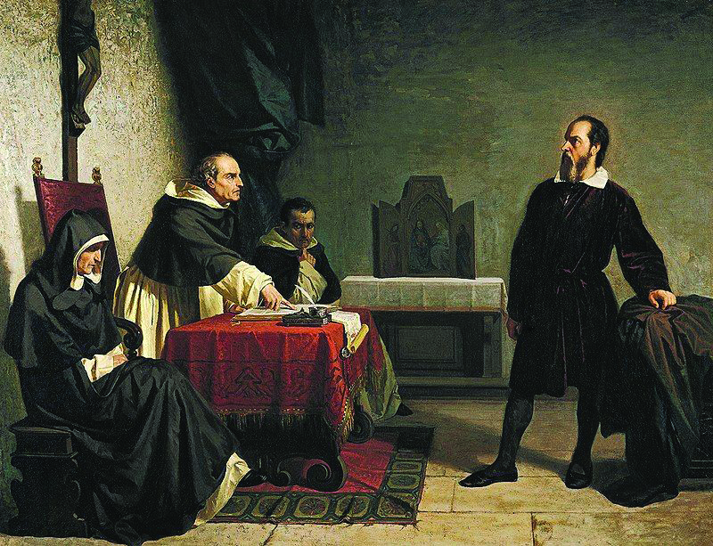 Galileusz przed rzymską inkwizycją – obraz autorstwa Cristiano Banti (domena publiczna)