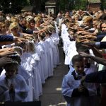 04.05.2017 roku, o godzinie 11.30, 36 dzieci z parafii św. Stanisława Kostki w kościele świętokrzyskim przyjęły po raz pierwszy Komunię św. Do tak uroczystej chwili przygotował je ks. kan. Janusz Zdunkiewicz i katecheci