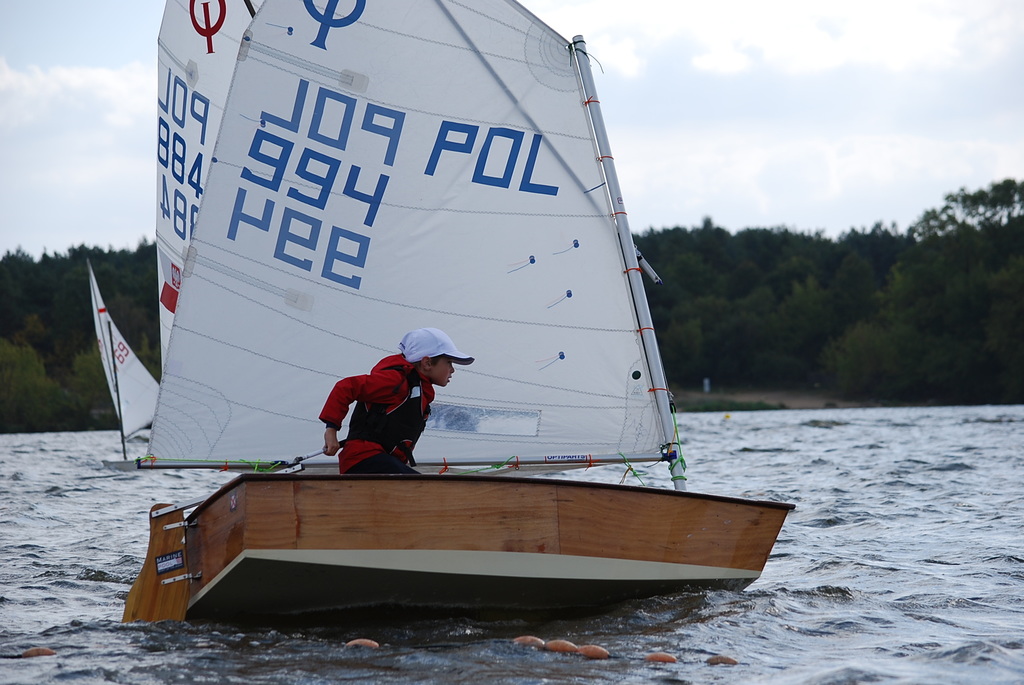 Tak, to taka żaglówka Optimist dla dzieci od czterech lat do… Nie wiem, jak to będzie teraz, bo po olimpiadzie będą się zmieniały przepisy i trudno powiedzieć… Moja żaglówka ma 2,40 m i nazywa się KORNIK numer POL 333.