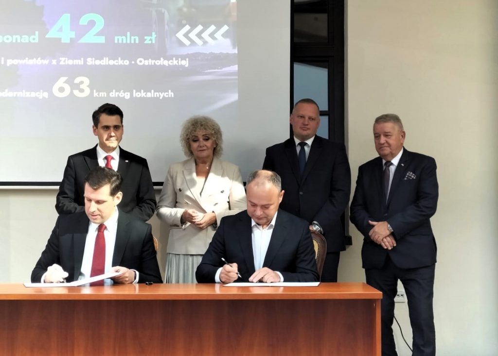 We wtorek, 10 października, w Centrum Dialogu Kultur w Węgrowie, stosowną umowę z wojewodą mazowieckim Tobiaszem Bocheńskim, podpisał starosta pułtuski Jan Zalewski, wicestarosta pułtuski Beata Jóźwiak przy kontrasygnacie skarbnika powiatu Renaty Krzyżewskiej.