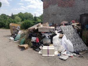 Przypomnijmy że w TBS i PPUK interweniowaliśmy na prośbę zdesperowanych mieszkańców, którzy przez kolejne tygodnie nie mogli się doprosić wywiezienia wciąż rosnącej sterty cuchnących odpadów obok podwórkowego śmietnika. Wyglądało to tak jak na załączonym obrazku, czyli koszmarnie. Pachniało jeszcze gorzej. Tłumaczono im, że to tak zwane gabaryty, a te odbiera się w ściśle określonych terminach. Problem w tym, że oprócz gabarytów urosła tam góra różności. Przypomnijmy, były buty, rękawice bokserskie a nawet suknia ślubna! Rady administracji zbliżały się do granicy absurdu. Na monitoring TBS-u nie stać, ze szlabanem czy bramą też problem, więc to mieszkańcy powinni pilnować podrzucających śmieci i zawiadamiać organy ścigania…