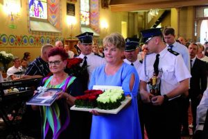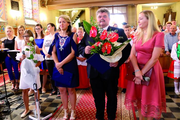 Na uroczystości stawiło się wiele grup parafialnych, przybyli strażacy, były przemówienia, wśród nich głowy gminy Cezarego Wojciechowskiego (w imieniu SAMORZĄDU). Popłynęło wiele wiele życzeń, między innymi od ks. dziekana Wiesława Koska. Ewa: – Życzenia składały grupy i indywidualni mówcy. Katarzyna Brusk – Zaręba złożyła je w imieniu rodzin i parafian, Justyna Milewska w imieniu grup liturgicznych.