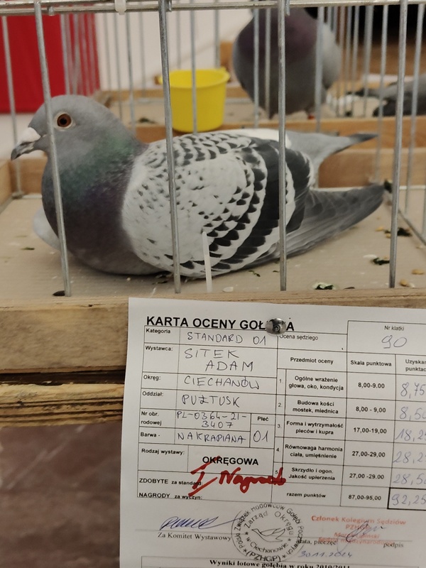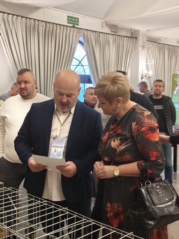 – Dzisiejsza wystawa? To wystawa najlepszych gołębi, które pojadą na reprezentację Polski do Katowic 7 stycznia. A licytacja? Ta przeprowadzona była dla SOSW im. Anny Karłowicz w Pułtusku, dotyczyła też koszulki i piłki Kuby Błaszczykowskiego. Za chwilę przekażemy pani dyrektor wylicytowaną kwotę, 19 400 zł. Piękna charytatywna akcja od hodowców. Pomysłodawca akcji? Ja – śmieje się Krzysztof Roman, prezes oddziału Pułtusk, również prowadzący aukcję. – To moja któraś z kolei wystawa i aukcja, nie liczę już tych licytacji, zapraszają mnie po prostu okręgi i oddziały. A OKRĘG Ciechanów podzielony jest na sześć oddziałów i każdy oddział co roku robi wystawę w innym miejscu, dziś w Pułtusku, za rok w Mławie, za dwa w Płońsku, za trzy w Ostrołęce. Tak, mamy puchary, mamy dyplomy, nawet dla zdobywcy dziesiątego miejsca. Na tysiąc hodowców dziesiąte miejsce jest bardzo satysfakcjonujące. W Polsce jest 43 tysiące hodowców, a tu jest reprezentacja Polski – jest gołąbek, który będzie drugi w Polsce. Jest tylko jeden lepszy od niego. Hodowca? Bogdan Jędrzejczyk. – Jak wygra mój gołąbek, to jakieś imię mu damy, ale jeszcze nie ma, tymczasem to pierwszy gołąb okręgu w gołębiach rocznych kategorii G – mówi pan Bogdan.