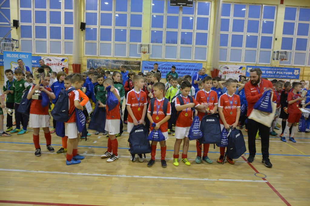 Tym razem do rywalizacji przystąpili orlicy (rocznik 2006/07). Walka o zwycięstwo była niezwykle wyrównana, gdyż wszystkie zespoły prezentowały zbliżony poziom. W końcowym rozrachunku najlepiej wypadli gospodarze, którzy wygrali całe zawody broniąc tym samym tytułu wywalczonego przed rokiem. Pułtuszczanie do ostatecznego zwycięstwa kroczyli przy akompaniamencie niezwykle pięknego dopingu, który motywował zawodników zwłaszcza w trudnych dla nich momentach. Za stworzenie tej niezwykłej atmosfery na trybunach oraz za przygotowanie pysznego poczęstunku rodzicom również należy się złoty medal. Dziękujemy serdecznie wszystkim drużynom i trenerom za przyjazd oraz za kolejną dawkę pozytywnych słów związanych z organizacją turnieju.