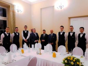 Warto też wspomnieć o cateringach, które rozsławiają zamkową kuchnię w Polsce i Europie. W ostatnim czasie obsługiwaliśmy chociażby zjazd kolejarzy, około 700 członków Związku Zawodowego Kolejarzy. W teatrze narodowym w Warszawie przygotowywaliśmy catering na trzech piętrach. Trudne zadanie – duża liczba osób, kilka poczęstunków, przyjęcie bankietowe. Nasza gastronomia poradziła sobie świetnie. Często bierzemy udział w obsłudze przyjęć dyplomatycznych, w miejscach bardzo znaczących, o czym nie do końca możemy informować. Mieliśmy przyjemność i zaszczyt obsługiwać uroczystość z okazji stulecia odnowienia współpracy między Stolicą Apostolską a Rzeczpospolitą Polską, w obecności przedstawiciela z Watykanu i przedstawicieli niemal wszystkich ambasad. Za jedno z obsłużonych przyjęć dyplomatycznych otrzymaliśmy od nuncjusza papieskiego pamiątkowy medal. Są to zadania dla nas trudne, ale i nobilitujące. Mamy ogromną satysfakcję z tego, że przebiliśmy się w morzu warszawskich firm cateringowych, a nasza kuchnia jest doceniana i chwalona. Nie mamy się czego wstydzić!