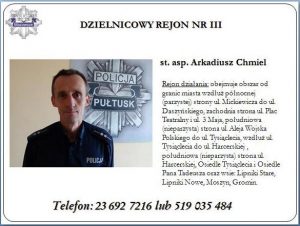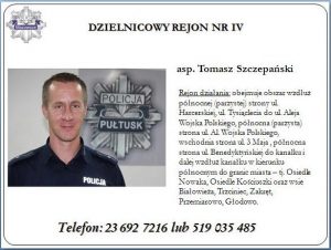 Funkcjonariusz, do którego każdy może zwrócić się o pomoc i poradę prawną, przekazać informacje dotyczące bezpieczeństwa – Dzielnicowy – to policjant „pierwszego kontaktu”, dbający o poprawę bezpieczeństwa mieszkańców w swoim rewirze