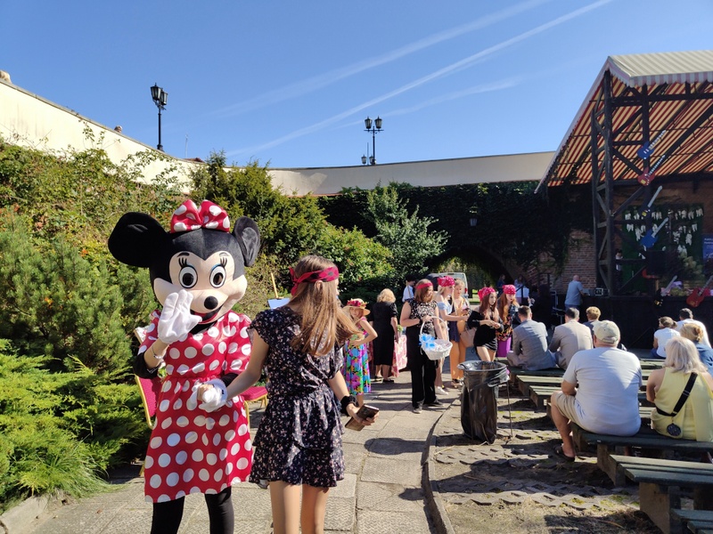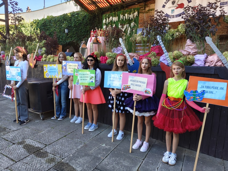 Wśród tłumku przewijającego się przed barwną sceną przechadzali się uczniowie TRÓJKI ubrani w stroje z lat 60. i 70. XX wieku, a konkurs -widowisko również poprowadzili uczniowie: Maja Piotrowska i Patryk Gadomski oraz Maria Siemek i Ksawery Borzuchowski.
