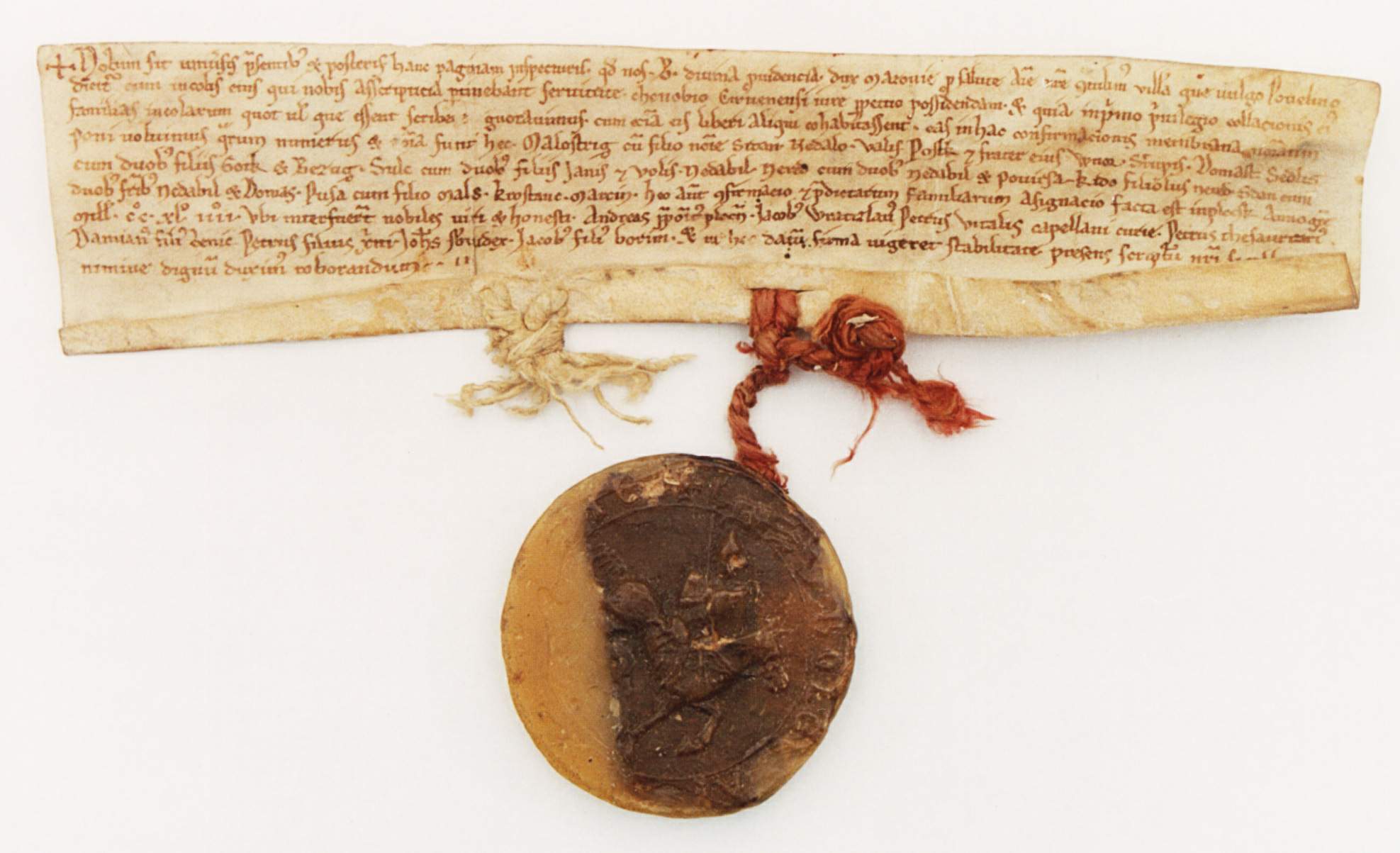 Bolesław książę mazowiecki nadaje klasztorowi w Czerwińsku wieś Powielin (Codex diplomaticus et commemorationum Masoviae generalis, wyd. J. K. Kochanowski, Warszawa 1919, nr 447). Archiwum Główne Akt Dawnych, Zbiór dokumentów pergaminowych nr 6436