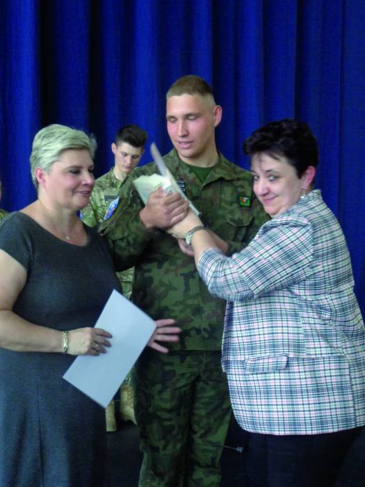 CEZARY KNYŻEWSKI: – Spędziłem w szkole trzy lata, na nauce, ale nie tylko. To lata pełne wrażeń: skakaliśmy, nurkowaliśmy, odbywaliśmy kursy samoobrony, wyjeżdżaliśmy na obozy. Uczyłem się w szkole dla mężczyzn, ale też dla dziewcząt, w klasie 21-osobowej. W naszej mundurowej klasie było siedem koleżanek. Jesteśmy zżyci, ale też nie ma taryfy ulgowej dla dziewcząt. Jak nas odbierają na ulicy? Bardzo dobrze, ludzie się przyglądają, przecież odróżniamy się od społeczeństwa na ulicy. Chodzimy w mundurach, w bordowych beretach i zachowujemy powagę. Kto zostanie w mojej pamięci? Pan kapral Adam Pytel, pani Ewa Obłuska, pan Mariusz Gierula. Co dalej? Zamierzam spróbować pójść do dwu służb – do policji i straży granicznej, zobaczymy, a może na studia?