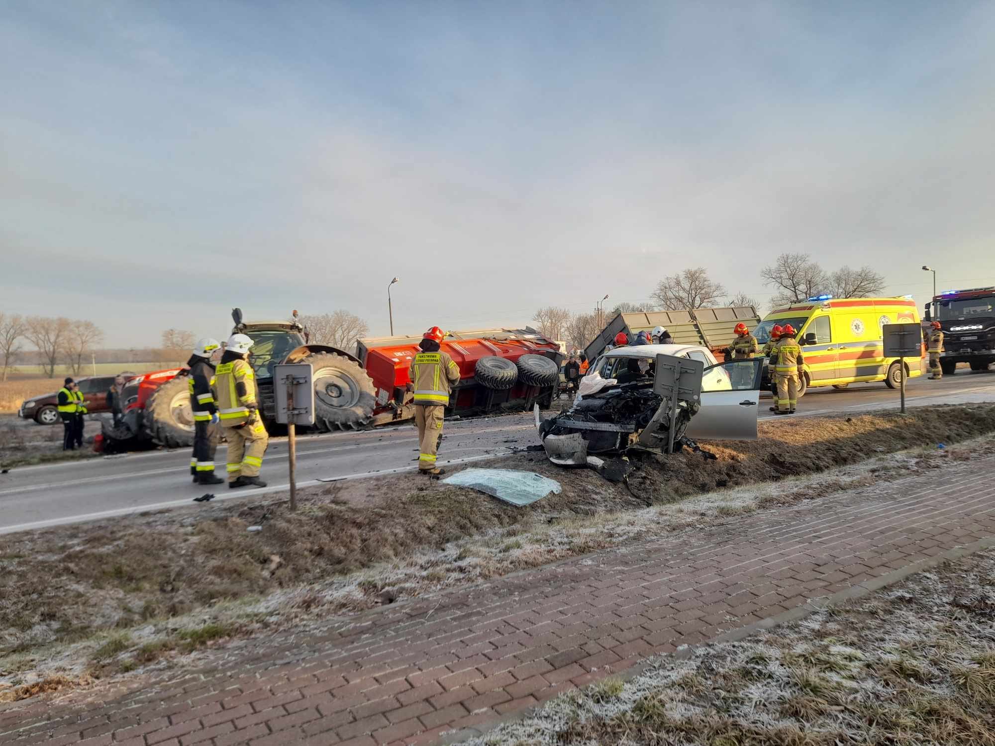 Dziś przed godziną godz. 8, w Zbroszkach, na drodze wojewódzkiej 571, doszło do groźnego w skutkach wypadku. Auto osobowe zderzyło się z ciągnikiem rolniczym, który po wypadku wpadł do rowu.