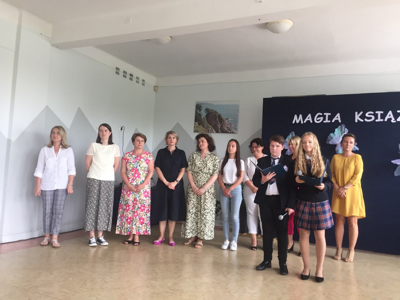– Nie byłoby Festiwalu Lektur Szkolnych MAGIA KSIĄŻKI, gdyby nie nauczycielki naszej szkoły, które realizują projekt od pięciu lat. Dziś serdecznie paniom dziękuję – powiedział dyrektor Łachmański i wyliczył niemałą grupę nauczycielek. Oto one: E. Jabłonowska, B. Milczarczyk, K. Kaźmierczak, A. Golba, B. Ciesielska, I. Nalewajk, E. Gronowska, K. Witkowska, M. Michalska; oraz Krzysztof Piekarski.