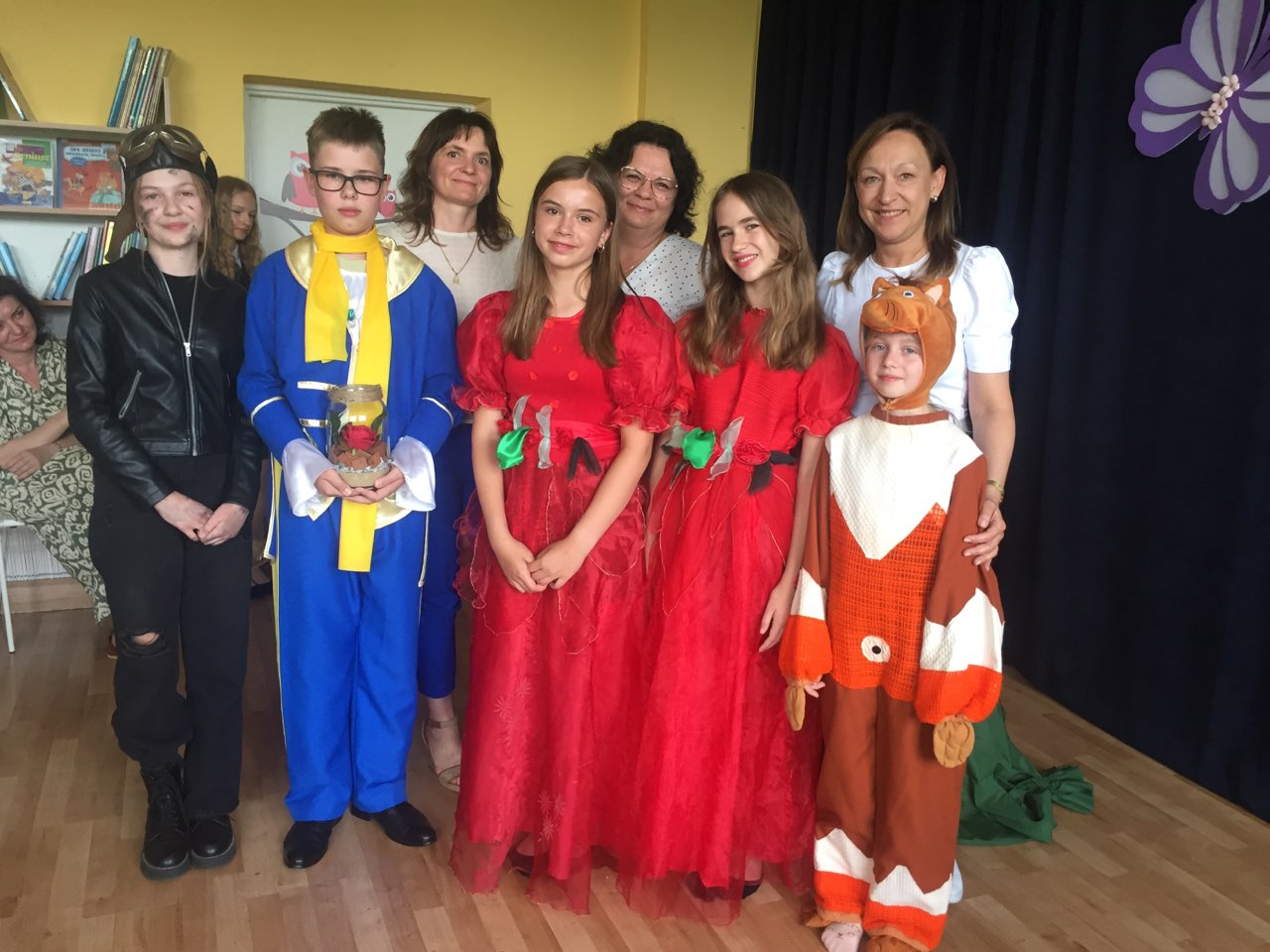 Oficjalną część jubileuszowego FESTIWALU LEKTUR SZKOLNYCH zgrabnie poprowadzili: Zosia Wądolna i Olek Wielechowski. Poprzedził ją wysmakowany, niezwykły wręcz spektakl powstały na motywach “CALINECZKI”. Doskonale zagrany, z baśniową oprawą i przebogatymi strojami scenicznymi. Wykonawcy? Grupa teatralna ZACZAROWANE CZWÓRECZKI, w skład której wchodzą również dzieci z edukacji wczesnoszkolnej. Spektakl “CALINECZKA” została przygotowana przez Jolantę Ciecierską, Małgorzatę Nierodę i Edytę Gąsior.