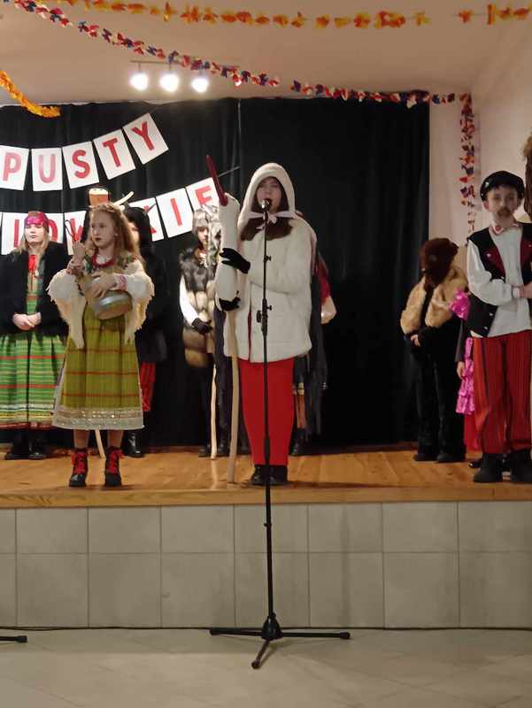 W ostatkowy wtorek, 4 marca, grupa Małych Dębiniaków zaprezentowała program artystyczny pt. “Jadzie zapust”, nawiązując do zwyczaju chodzenia przebierańców po zapuście w ostatni dzień karnawału, tuż przed rozpoczęciem Wielkiego Postu. Na scenie wystąpiło szesnaścioro dzieciaków ucharakteryzowanych na przebierańców oraz chór, składający się z sześciu mam tychże dzieci. Pozostali rodzice również byli zaangażowani w przygotowanie przedstawienia, zajęli się bowiem aspektami technicznymi oraz poczęstunkiem dla przybyłych gości. W tym miejscu trzeba nadmienić, że trzy dni wcześniej, 1 marca, grupa wystąpiła podczas Kurpiowskich Ostatków, zorganizowanych w Lelisie przez Biuro Regionalne Narodowego Instytutu Kultury i Dziedzictwa Wsi.