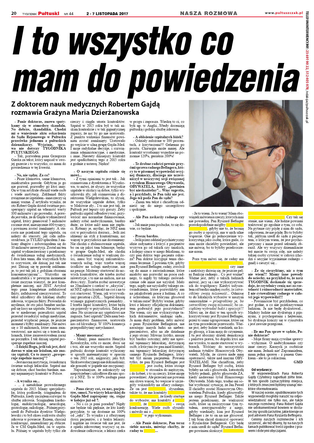 Poniżej publikujemy stronę z wywiadem, którego udzielił nam Robert Gajda