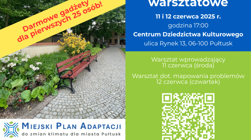 Zapraszamy do udziału w spotkaniach warsztatowych realizowanym w ramach prac nad „Miejskim Planem Adaptacji do zmian klimatu dla miasta Pułtusk” (dalej: MPA).
