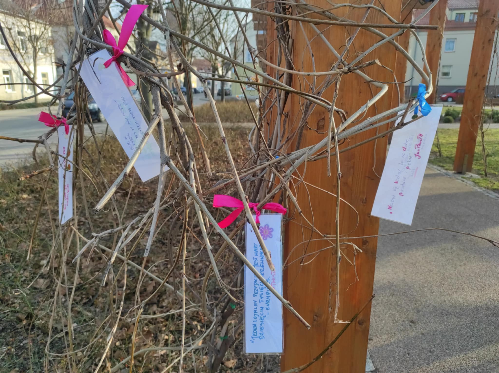 Z okazji DNIA WIOSNY witały pułtuszczan w trzech miejscach, przyozdobionych w kartki z sentencjami życiowymi: w pasażu Klenczona, w alejkach, przy popiersiu Wiktora Gomulickiego i placu zabaw przy skwerze im. Piłsudskiego. – Jesteśmy we cztery: Beata Bielińska, Natalia Pochmara i ja, Katarzyna Łątkowska z córeczką Oliwką, która częstuje przechodniów cukierkami. Uczestniczymy w miłej inicjatywie, która ma wywołać w ludziach uśmiech. Jej hasło to Miłe słowa – wielka moc. Wiosna 2025. Własnoręcznie przygotowałyśmy karteczki z cytatami- o przyjaźni, o miłości, na dobry dzień, na nową porę roku… Pierwszy przechodzień? To był mężczyzna, bardzo zaskoczony i mile zadziwiony, pozytywnie nastawiony do naszej inicjatywy. Z uwagą przeczytał wybraną przez siebie kartkę z sentencją – powiedziała TYGODNIKOWI pani Katarzyna o godzinie 6:30 w pasażu Klenczona.