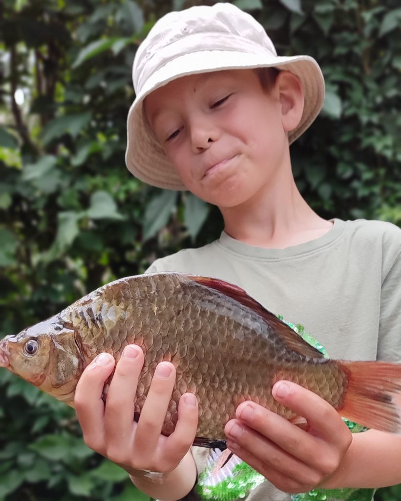 Leoś Koźniewski z Wołomina w tym roku kończy dziewięć lat, a przygodę z wędką rozpoczął od momentu kiedy to jego dziadek Andrzej zabrał go ze sobą pierwszy raz na ryby. Leonek miał wówczas cztery latka. Dziadkowie i rodzice Leosia posiadają swój wędkarski azyl we wsi Strzyże nad Narwią w gminie Pokrzywnica, skąd pochodzi dziadek Andrzej, który podobnie jak ja dzieciństwo i czasy kawalerskie spędził w rodzinnej wiosce położonej tuż za miedzą od mojego rodzinnego Gzowa.