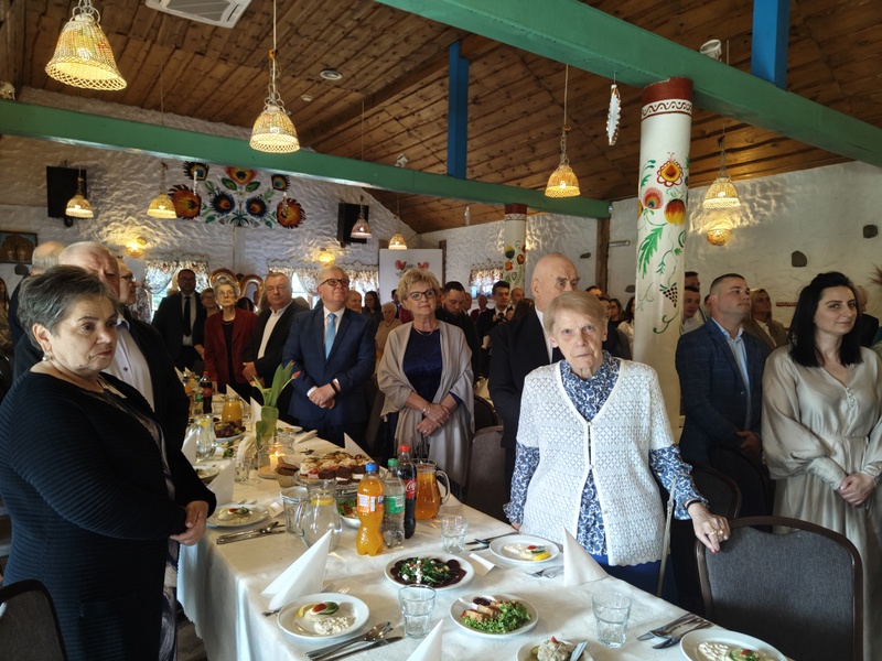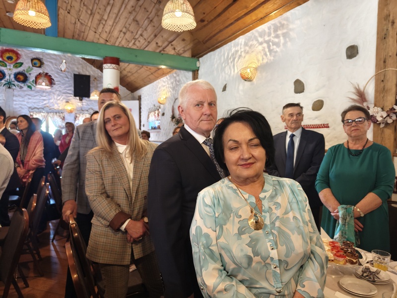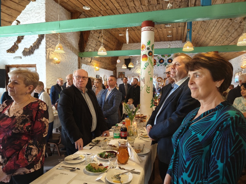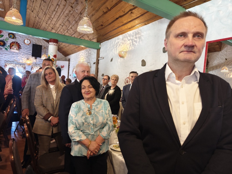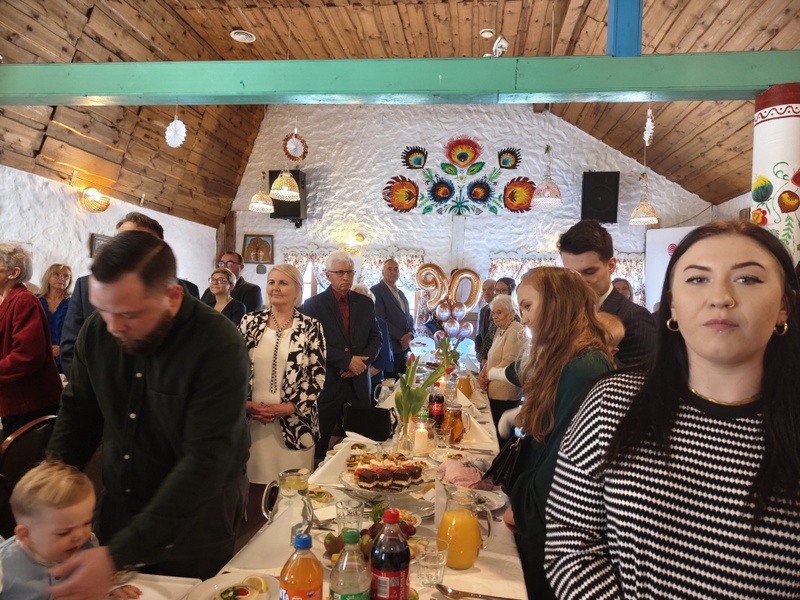 Długo pozował do zdjęć, odbierał kwiaty, z uwagą słuchał życzeń oraz wystąpień: ks. Wiesława Koska, poetki Adriany Szymańskiej i biznesmena Jana Kaczmarczyka. Ale… Ale najpierw do gości zwróciła się córka JUBILATA, Dorota Polewaczyk: – Dziękujemy za to, że z nami tutaj jesteście, za to, że tata mój jest szczęśliwy, ja również. Mama moja także. I teraz o zabranie głosu poproszę księdza, naszego gościa, o powiedzenie paru słów, i bardzo proszę o to, żebyśmy wstali, żeby życzenia dla JUBILATA miały godny wydźwięk.