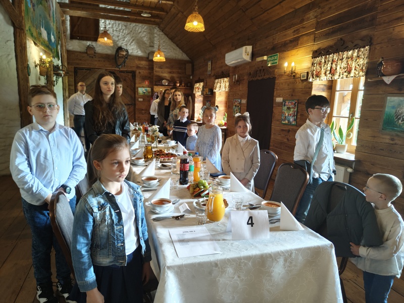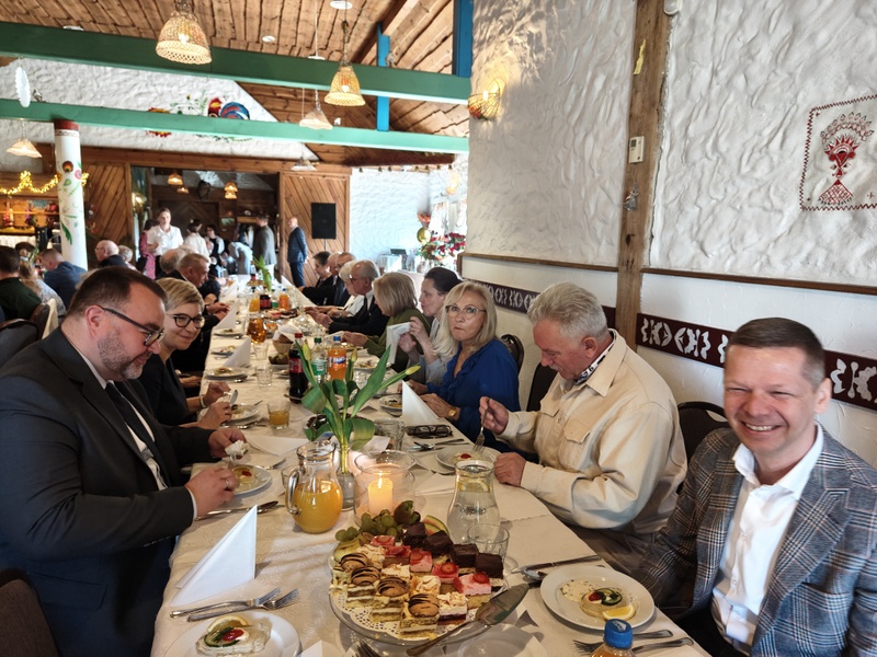 Zanim zebrani zasiedli przy stołach, odśpiewano, na prośbę ks. Koska, “pieśń poważną, ale miłą, sympatyczną” – “Życzymy, życzymy…”.