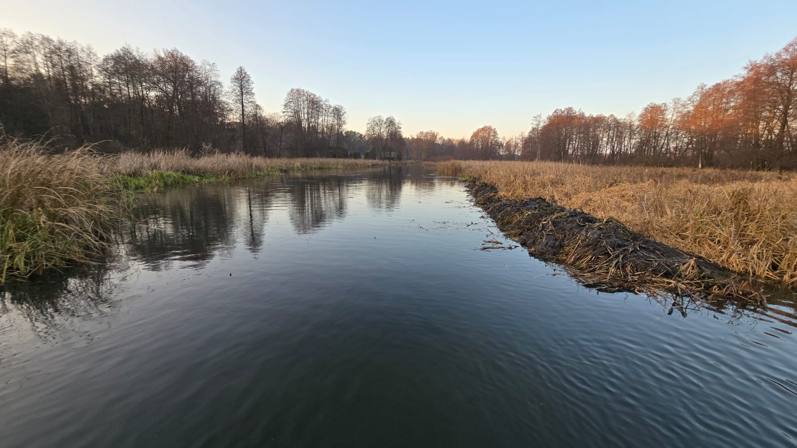 10-11 listopada, na wysokości wsi Strzyże, udrożniliśmy i pogłębiliśmy rozlewisko obejmujące swoim rozmiarem ok. hektara, które od ponad 30 lat było całkowicie zarośnięte chwastami i roślinnością inwazyjną. To tak jakbyśmy będąc grupą chirurgów usunęli guz nowotworowy ze zdrowego organizmu. Do tej pory nikt ze służb i instytucji odpowiedzialnych z mocy Ustawy za mazowieckie cieki wodne nie kiwnął nawet palcem. Wszystkie prace wykonywane przez naszą proekologiczna organizację są wykonywane w terminach zawartych w pozwoleniu wodnoprawnym i akcie dzierżawy , podpisanym z Regionalnym Zarządem Gospodarki Wodnej w Warszawie w roku 2021 na działkach 229/7 i 63/1 na wysokości wsi Gzowo i Strzyże. Tak też należy postąpić z lewobrzeżnym dopływem Narwi bardzo istotnym dla ekosystemu – rzeką Prut od mostu w Kruczymborku do rozlewiska Narwi. Wycinanie i wykaszanie roślinności nic kompletne nie da, gdyż z pierwszymi promieniami wiosennymi słońca i kolejnego upalnego lata eksplozja roślinności będzie po trzykroć większa, jeżeli nie przywróci się odpowiedniej szerokości i głębokości z usunięciem systemów korzeniowych specjalistyczna koparką, tak jak my to uczyniliśmy z pomocą sponsorów i darczyńców.